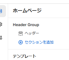{% section ‘header’ %} ⇒ {% sections ‘header-group’ %} に変更する